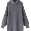 Goodnight Lineskirtstylish Collared Knitted Midi Sweater Dress (2 Colors)