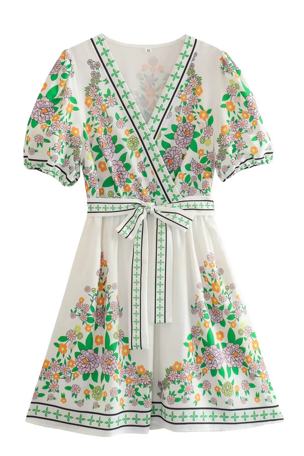Goodnight Lineskirtstylish V-Neck Floral Short Dress