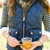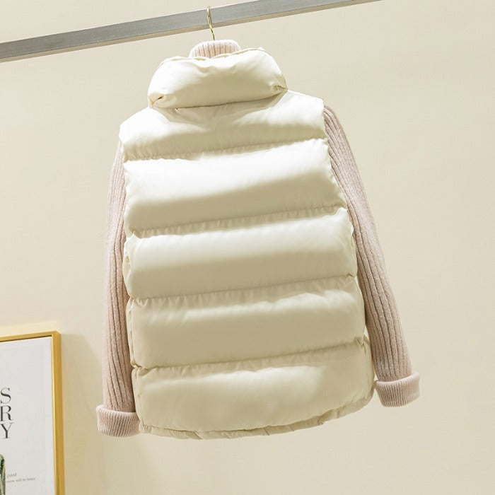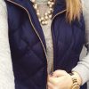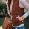 Design: Zipup, Plaid, Sleeveless, Stand Collar, Quited, Slimming and Front Pockets.