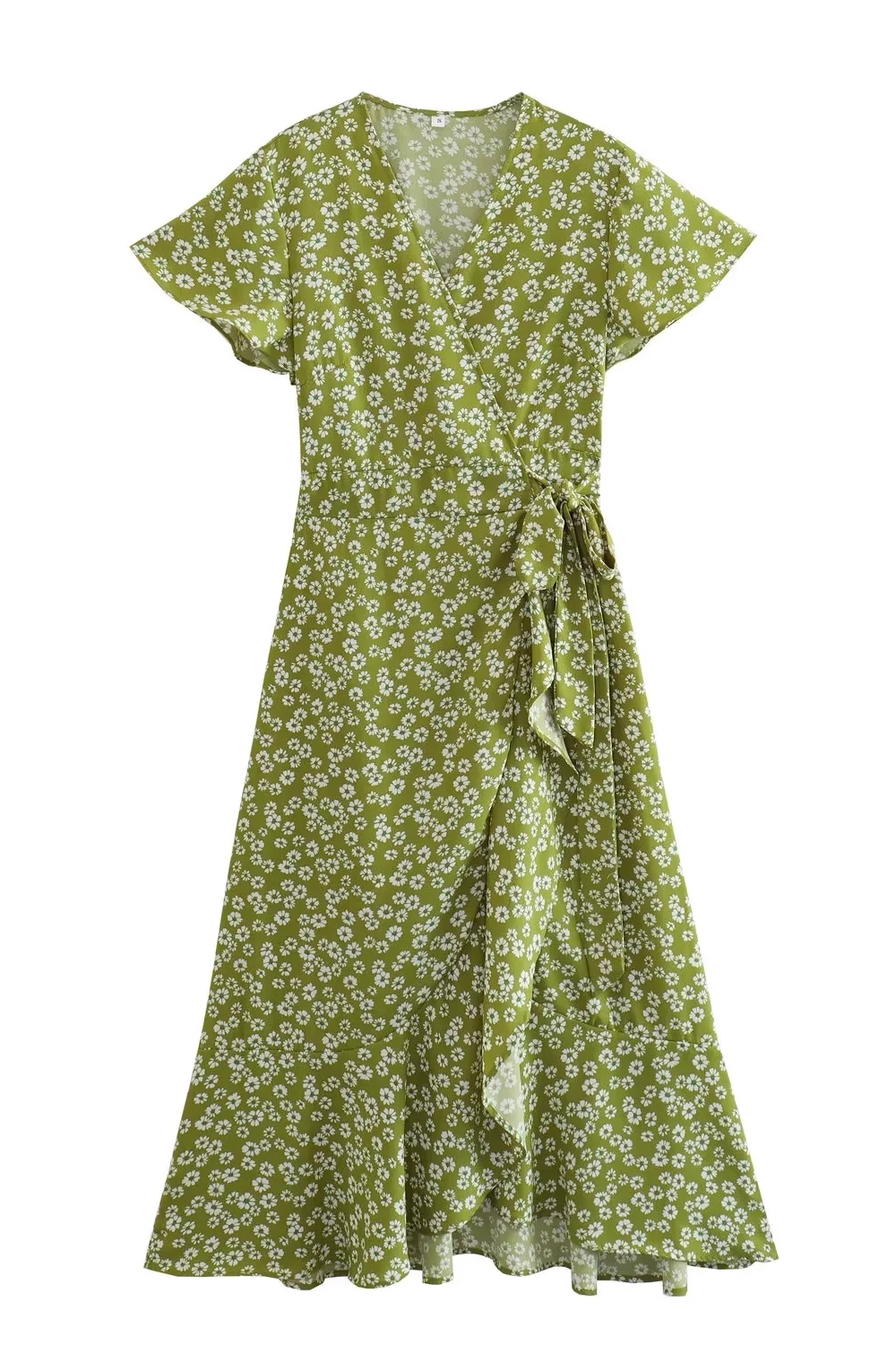 Goodnight Lineskirtstylish ‘Sapphire’ V-Neck Floral Tie-Side Wrap Dress